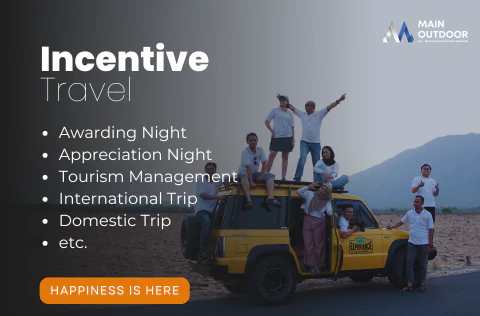 Raih penghargaan dengan pengalaman yang tak terlupakan melalui program Incentive Travel kami! Bawa tim Anda menjelajahi destinasi-destinasi eksotis dan menikmati petualangan outdoor yang seru.